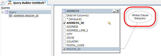 4. Drag the REGION table to the Diagram pane and select the REGION_ID column.