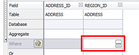 1. Select the Where field in the REGION_ID column and click . The Where Condition editor displays.