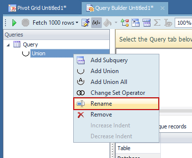 The Query Builder also provides the ability to create calculated columns, Unions, functions, to group and sort data as well as to export result sets simply by using the graphical interface.