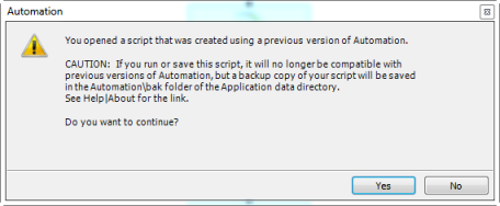 3. Select No (and do not elect to save the script), to keep the script compatible with the previous version.