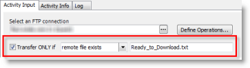 8. This step demonstrates the Transfer ONLY if option. You can use a signal file to instruct the script when to download. If the signal file (for example, Ready_to_Download.txt) is in the folder, the script can download the Excel files. (The signal file is only a technique used in the tutorial. It is not required for FTP downloading.)