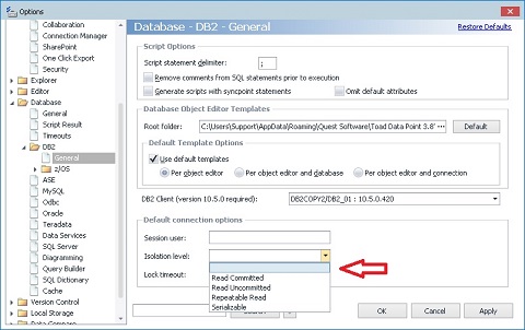 How to control isolation levels in Toad Data Point for DB2 connections? (4325492)