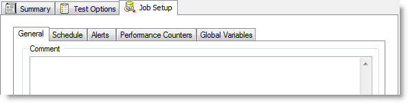 Use the Job Setup tab of the New Job wizard or Edit Job wizard to schedule a job, set up email notifications (alerts), add performance counters, and manage global variables.