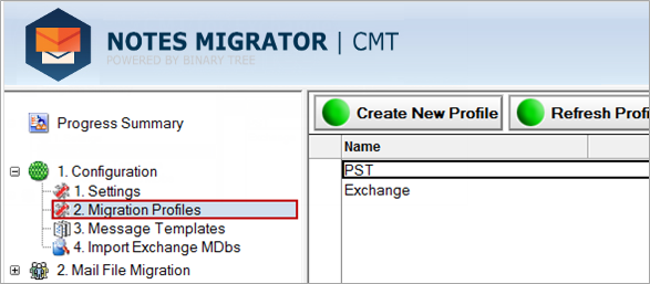 Migration Profiles define settings for certain groups of users. For instance, it may be desirable to have a profile where all executives have a filter that only migrates the last four years of mail and calendar to Exchange. Every user must have a Migration Profile set before migration can proceed.