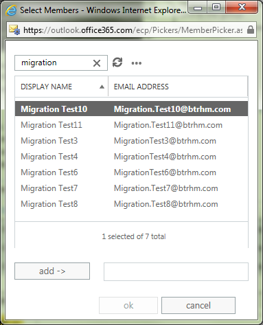 2. An Address List will appear. Perform a broad search term for all the accounts you require and then elect all the accounts you would like to add.