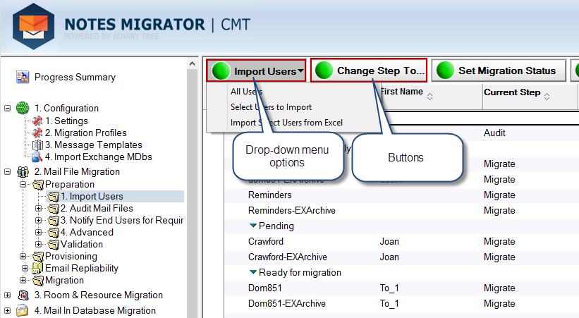 3.2. Navigating through Migrator for Notes Domino Database