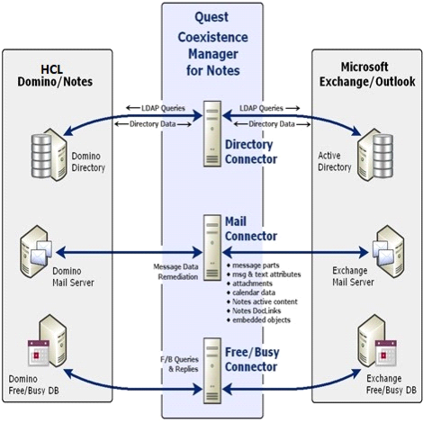 Quest Coexistence Manager for Notes includes three primary components to meet the needs listed above: