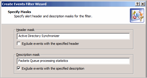 You can customize any filter by selecting it in the management tree under the Events node and selecting the Edit Filter command. The Create Events Filter wizard is started to help you with the procedure.
