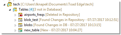 You modified an object in your database/schema / repository. These changes have been detected by Toad Edge but they have not been confirmed yet. To confirm and resolve them, Synchronize the database/schema and the repository |