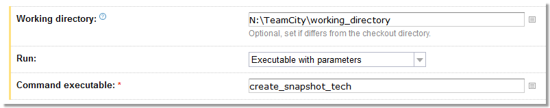 This example illustrates how to create a Create Snapshot build step and use it in TeamCity.