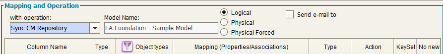 No New: when importing data from an external source, it’s possible that the master list of objects involved in the operation is the one contained in EA Agile V3 workspace. In such a case, the user would want existing object to be updated (for the only properties used in mapping), but no objects to be created. If so, user may choose to check “No New” option, on the keyset of the master object type, and this will prevent new objects to be created, while existing will be updated within bounds of mapped properties. The same applies when the object list which has not to be extended is the one related to an object type associated with the master, involved in the operation. In such a case, user may choose to check “No New” option, on the record related to the association, and this will prevent new associated objects to be created.
