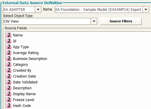 extract through an EA Agile Adapter for the selected object type. The “Source Filters” button allow user to pick only the desired information, while default operation includes all of them.