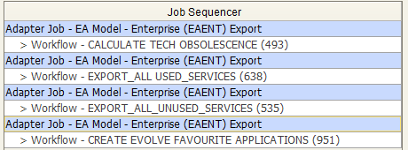 The user may define job sequences, configuring adapters and workflow in a real logical flow; the user may choose between available adapters and related workflows which ones, and which order they belong in the Job Sequence: