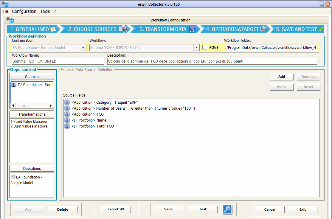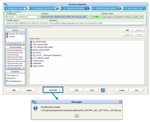 The result of the import operation is then shown to the user, which can edit/test/schedule workflow as usual: