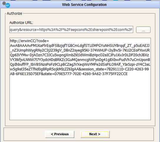 The  button steps into the next window, which requires user to browse to authorization URL and provide grant to the application: