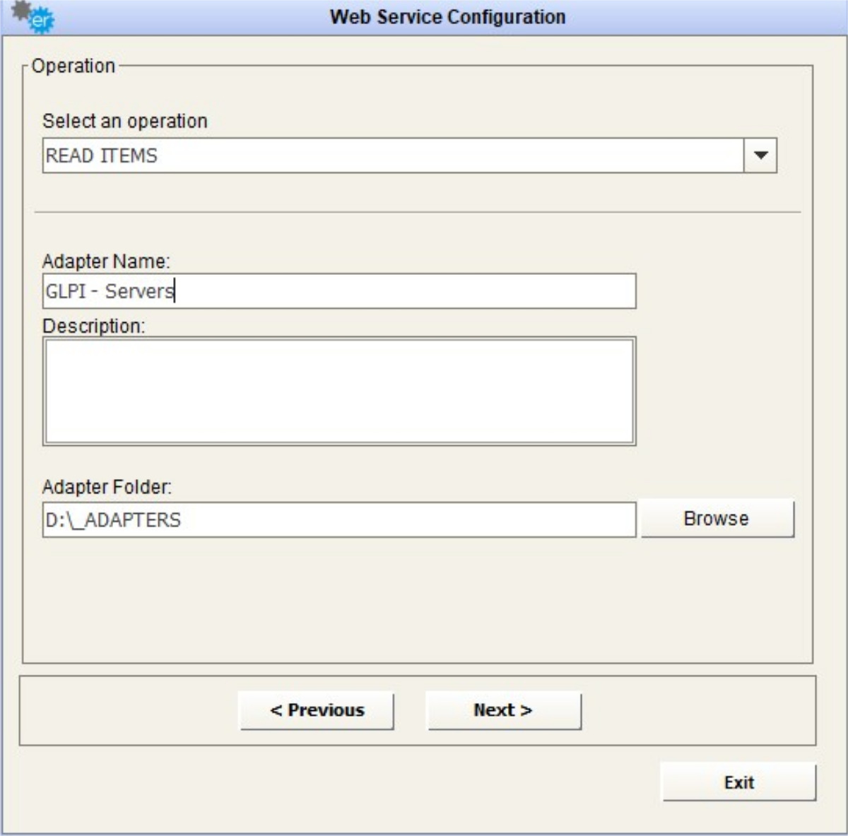After selecting the desired operation, it is required to enter a name and a description for the adapter in the appropriate fields; the user must browse the file system for the adapter folder (used to save intermediate and result file for adapter execution).