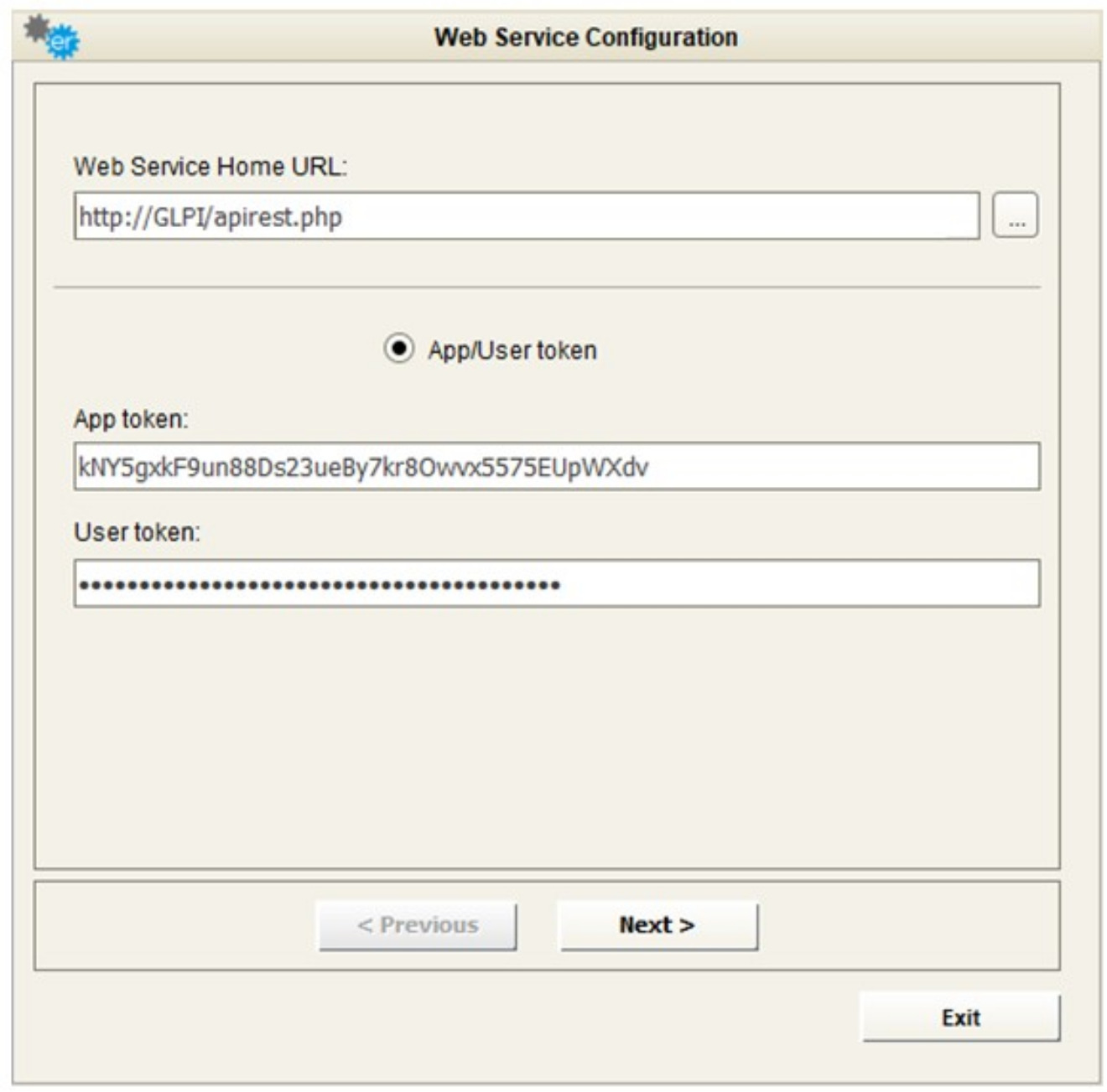 To use the adapter for GLPI, fill the field “Web Service Home URL” with the GLPI home page URL you want to connect to. Then provide the APP token and user token to connect. Or use your service provider URL in the field “Web Service Home URL”and choose x-api-key and supply the necessary API key.