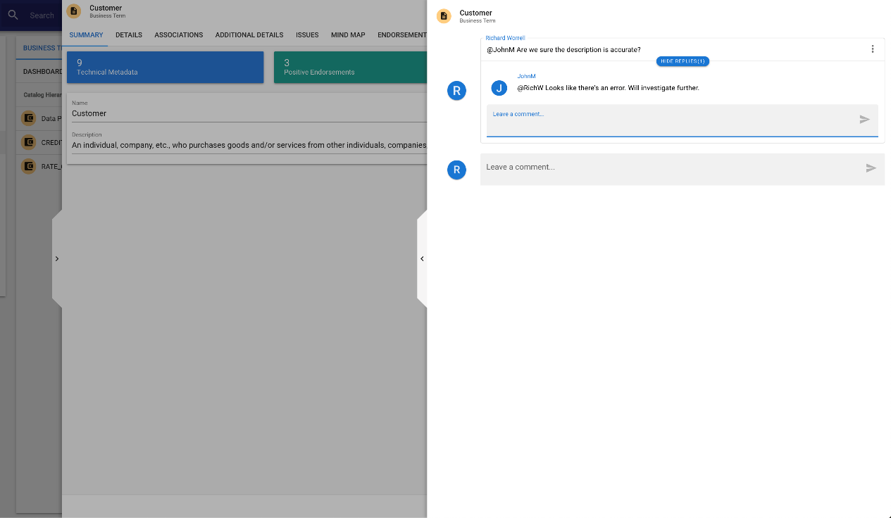 Collaborate on objects by adding comments and mentioning other users. Those mentioned will receive an in-app & email notification.