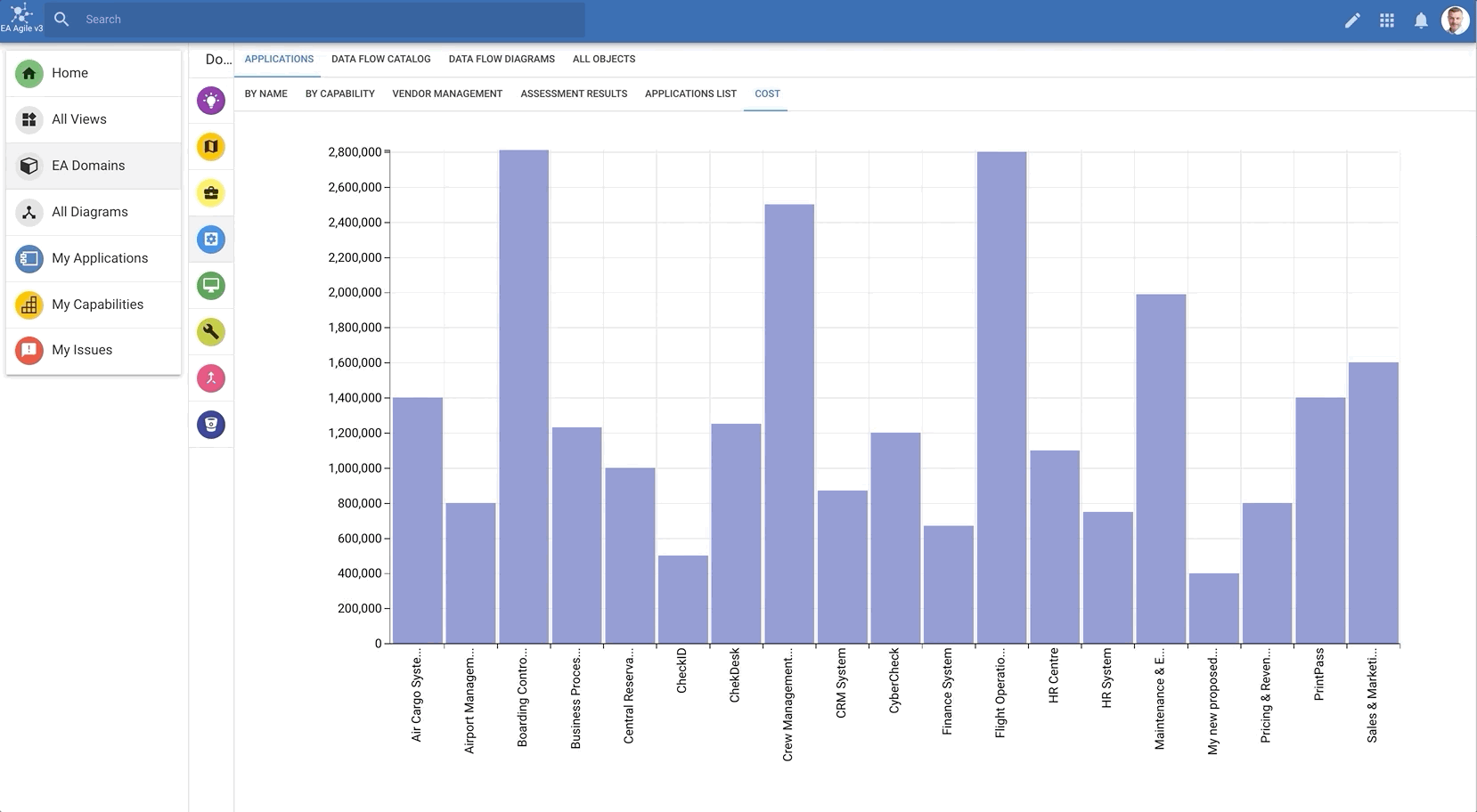 There's a new chart type available in EA v3: Radar Chart. Users can utilize this new chart for either an object instance or a collection of objects.