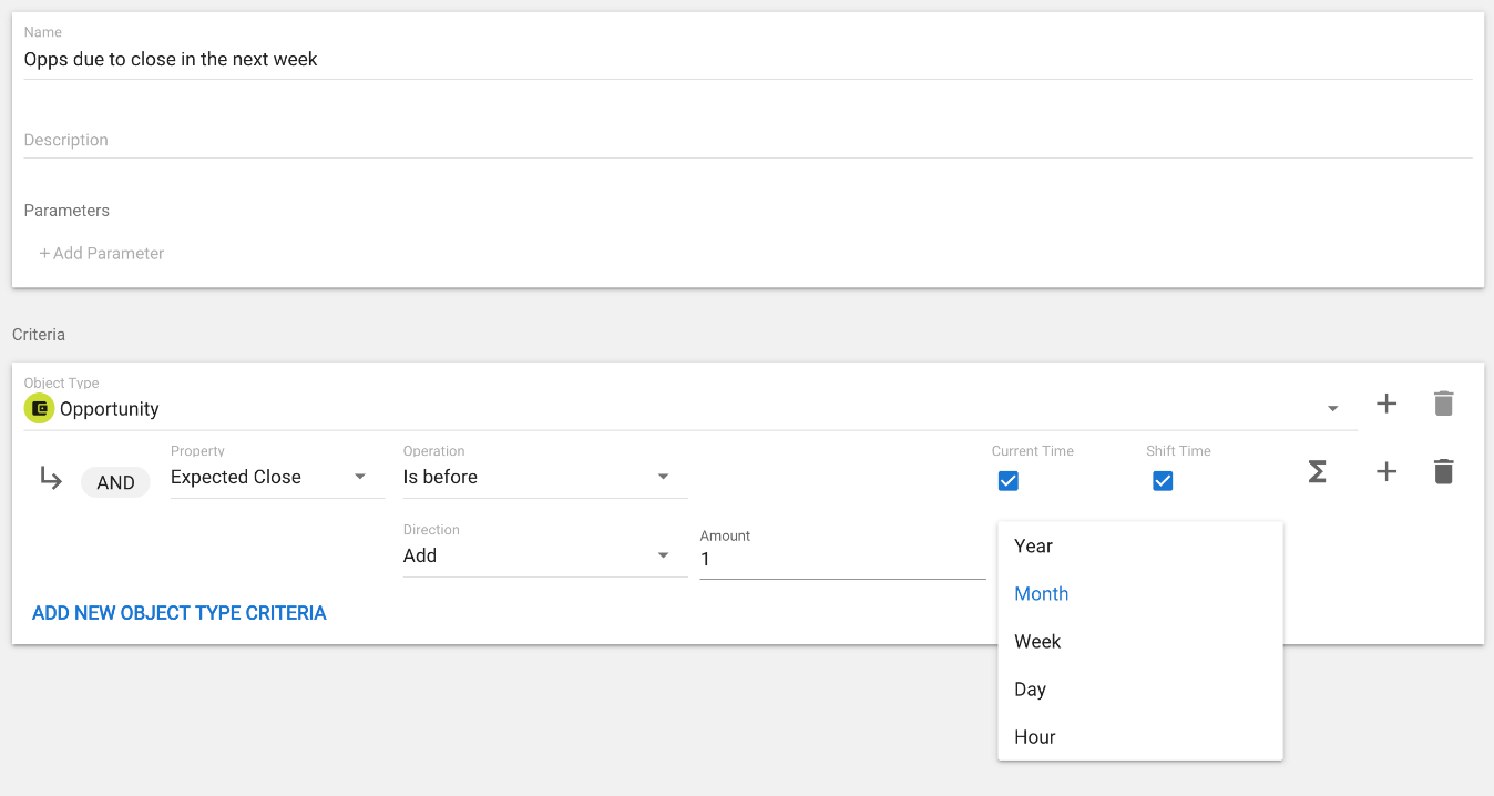 We've added additional operations to Filters to support date intervals. e.g. Show me all objects created in the last week or show me all Opportunities that are expected to close in the next 7 days