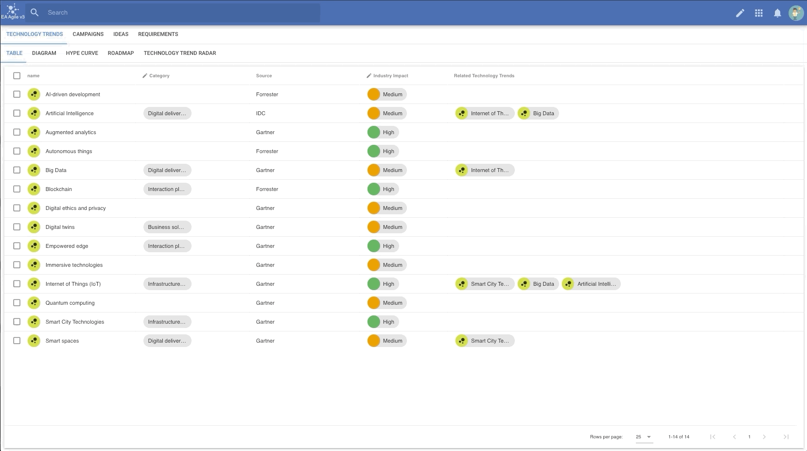 Heatmaps being used in a Roadmap to highlight high impact technology trends