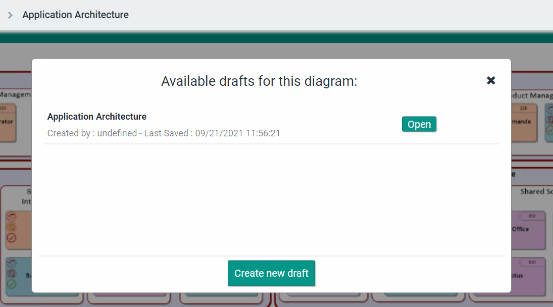 Key Feature: When creating a draft diagram from a published diagram, Evolve will now ask if you wish to use a previously created draft for this published diagram, if one (or more) exist.