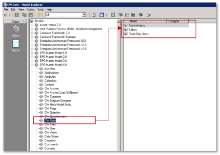 Launch Model Explorer and create two (2) distinct objects within the CW Role object.