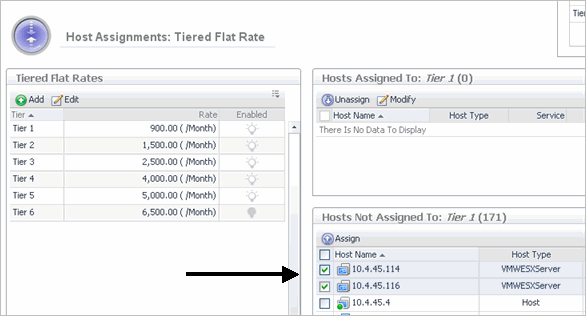 Hosts Not Assigned To—this table shows all the hosts that are not assigned to the selected tier. To add a host to a selected tier, choose the host you wish to add and click Assign on the toolbar. This moves the host into the Assigned To table view, and associates the host with the tier that was selected. Each column in the table can be sorted. |