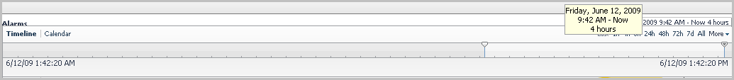 Hover the cursor over the zonar to cause a popup to appear that displays the dates and interval (number of hours or days) spanned by the time range.