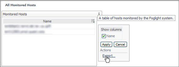 As each row is rendered at runtime, the context key currentRow contains a pointer to the current object in the list of hosts. Any property of a host object that can be rendered as a string can be selected as a column entry.