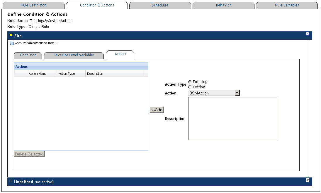 Rule Name: Specify the rule name. For example, MyCustomAction.