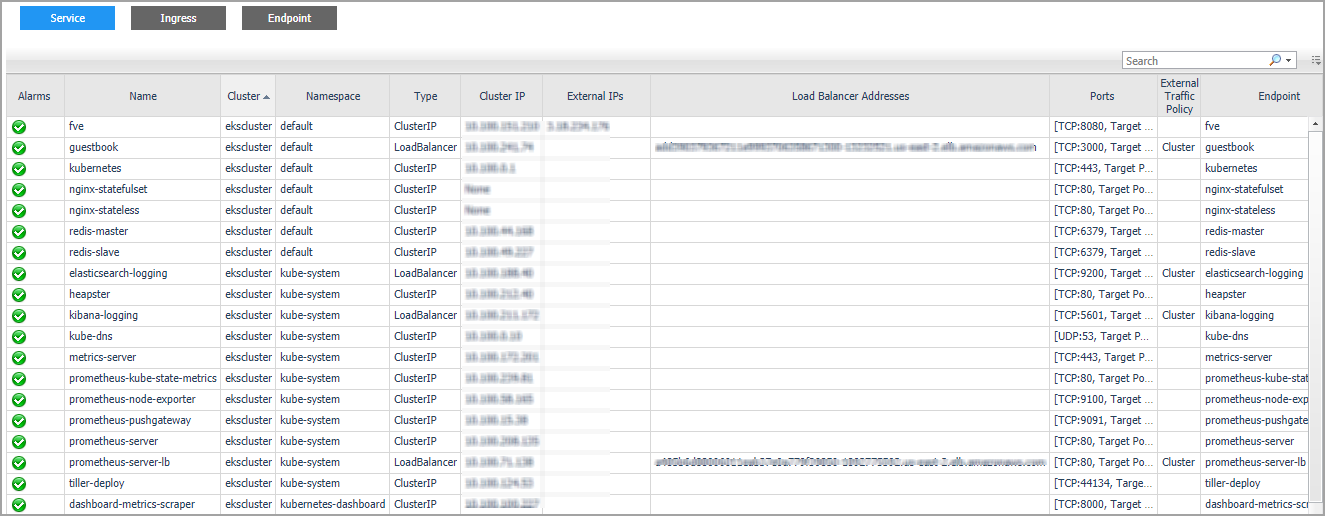 The Load Balancer dashboard includes information about Kubernetes service, endpoint, and ingress. A Kubernetes ingress can provide load balancing, SSL termination, and name-based virtual hosting. A Kubernetes service is an abstraction which defines a logical set of pods and a policy by which to access them - sometime called micro-services. Kubernetes will update the endpoint whenever the set of pods in a service changes.