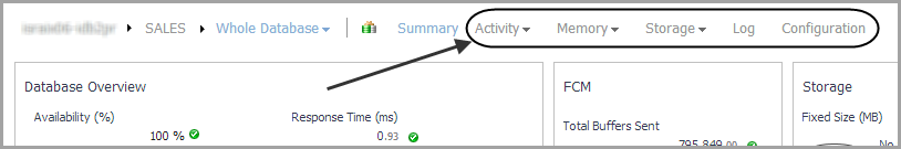 From the Database home page, you can drill down to other pages that display more detailed metrics about the database.