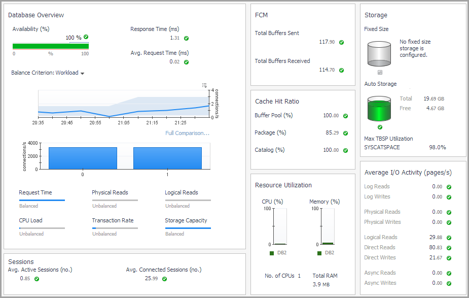 Balance Criterion. The level of balance exhibited, for a particular database criterion (for example, workload in terms of the number of connections), over the course of the selected time range. Click the arrow at the right of “Balance Criterion” to choose a different criterion from the list.