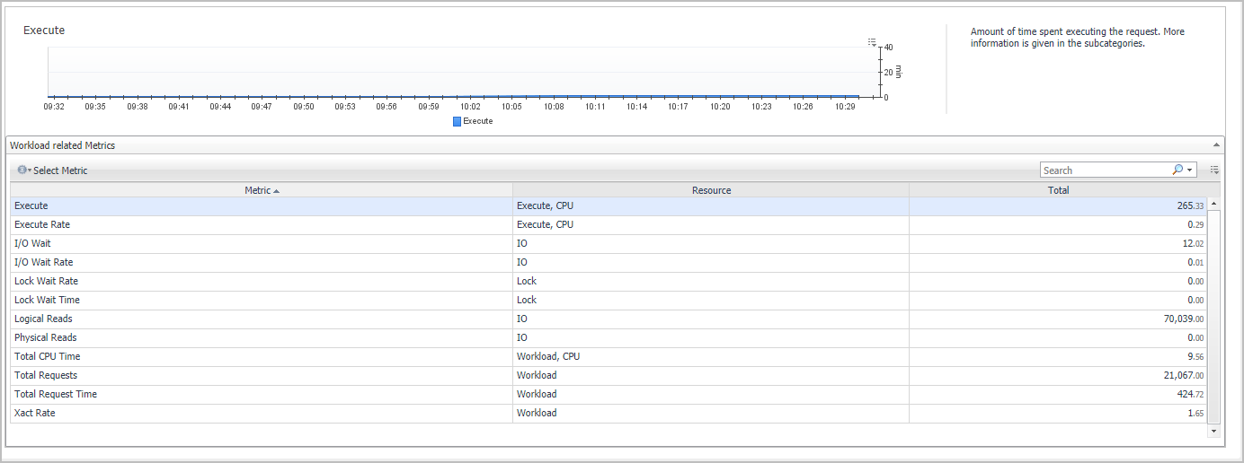 Metrics Overview - Displays a graphical representation of the metrics highlighted in the Workload related Metrics table below.  |