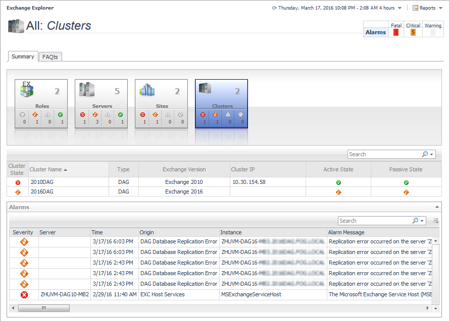 Exchange Cluster Explorer Summary view