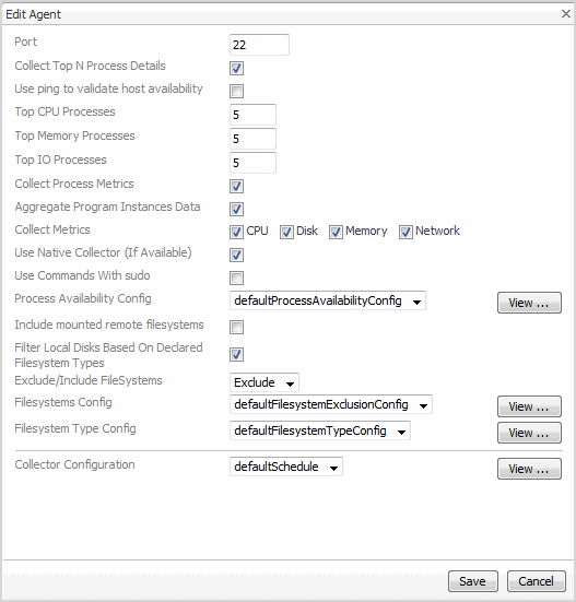 Edit Agent: allows you to edit the agent properties for the selected host or hosts.