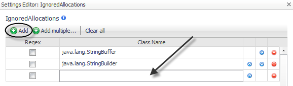 Even with object tracking enabled, some object allocations may be considered uninteresting. For example, the StringBuffer class is allocated as a temporary object by boilerplate code and is automatically generated by Java compilers. As a result of string manipulation, these objects are generated but should not cause memory issues. Use the IgnoredAllocations property to indicate objects that should not be tracked, even if those allocations are performed by classes in the tracked class list. For more information about tracking object classes, see Tracking object classes .