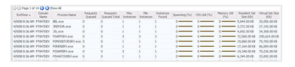 Go to PS_AppServer_Process_Details Table View . This displays data for all instances of the selected process. |