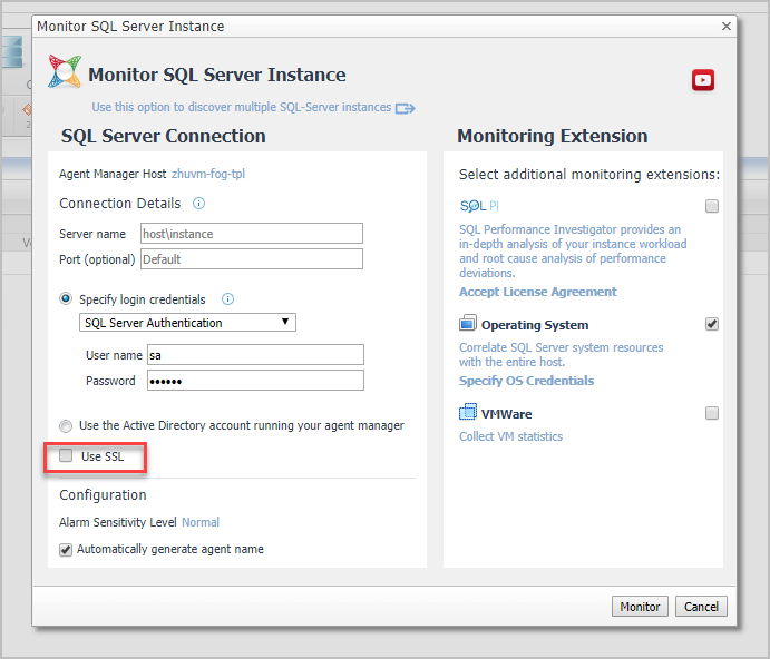 Defining the Connection Settings for the Monitored Instances