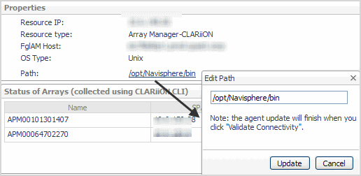 CLARiiON monitoring using CLI displays a path property.