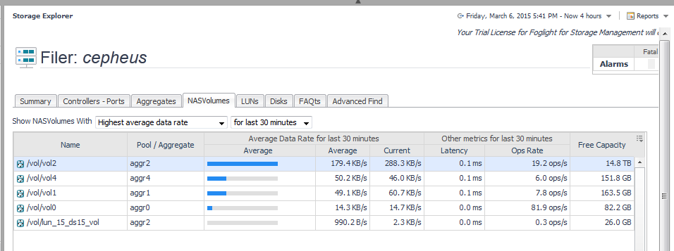 Foglight for Storage Management supports NetApp filers. NetApp uses the word aggregate instead of pool, but the metrics collected for aggregates and pools are similar. In some filer views, in particular the views on the LUNs tab and Disks tabs, the word pool may be displayed instead of aggregate, but in this context it refers to aggregates.