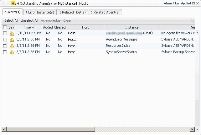 You can use other types of attributes to filter this list. For example, clicking a severity icon in a tile shows only the database instances of that database type that are in that alarm severity state. For more information about filtering this list, see Filtering the list of database instances .