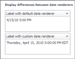 The figure shows how a date appears when the default renderer is used, and how it appears when both Display Length and Time Display Length are set to Full.