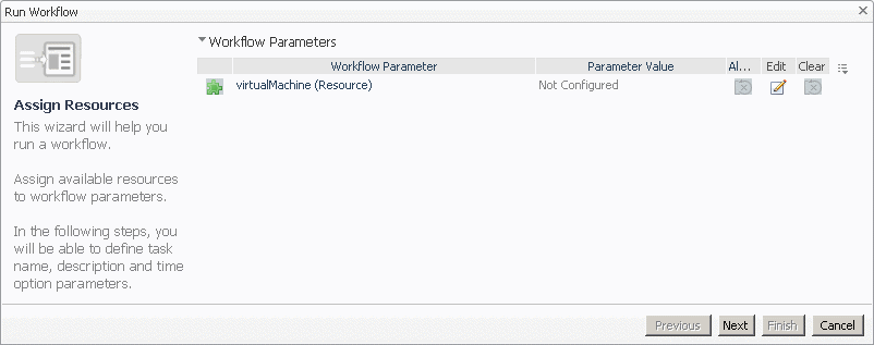 On the VMware Explorer Administration tab, in the Workflows view, select the workflow that you want to run.