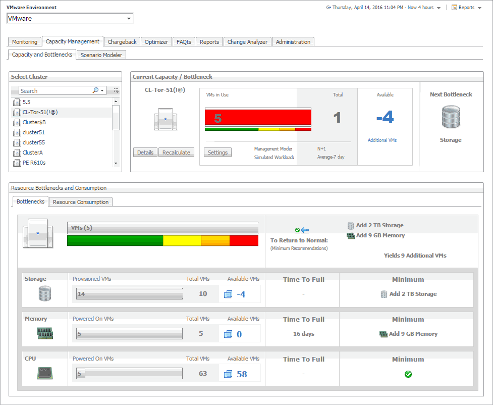 For complete information about this tab, see the Managing Capacity in Virtual Environments User Guide.