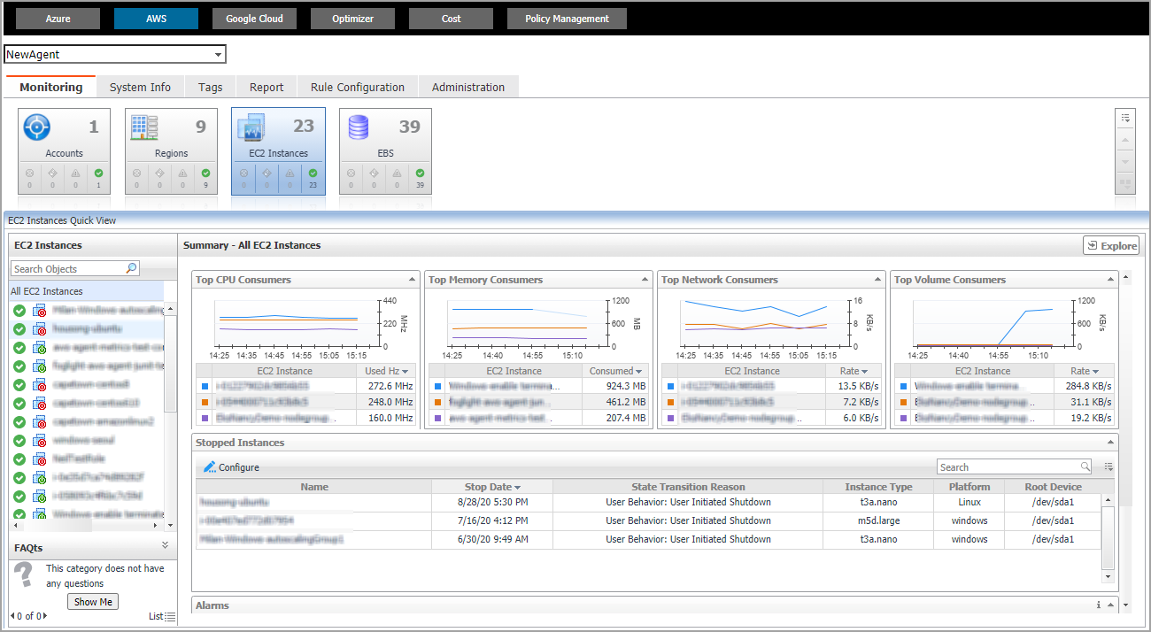 Using Foglight Hybrid Cloud Manager for AWS Monitoring Tab System Info Tab Tags Tab Report Tab Rule Configuration Tab Administration Tab Optimizer Tab Cost Tab Policy Management Tab