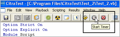 CitraTest® provides timing functions to instrument testing scripts. Instrumentation enables the user to monitor the timings of discrete activities within the application, for example, logging in or getting an account balance.