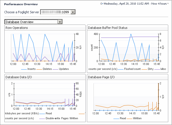 Contents of this view includes a drop down to select the host name. Here, you can select a Federation Master, Federation Child, or standalone server. To do that, click Choose a Foglight Server and select a host from the list that appears. It also contains the following embedded views: