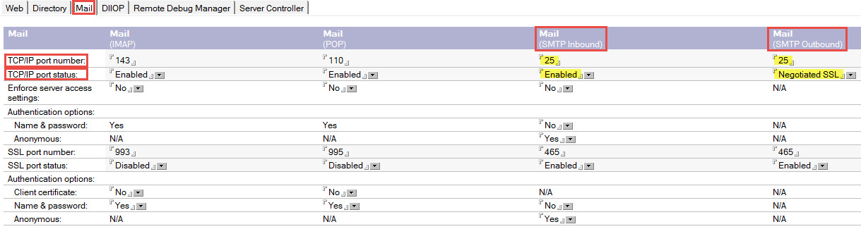 Next, create or modify an existing Server Configuration document to handle SMTP traffic and secure connections.